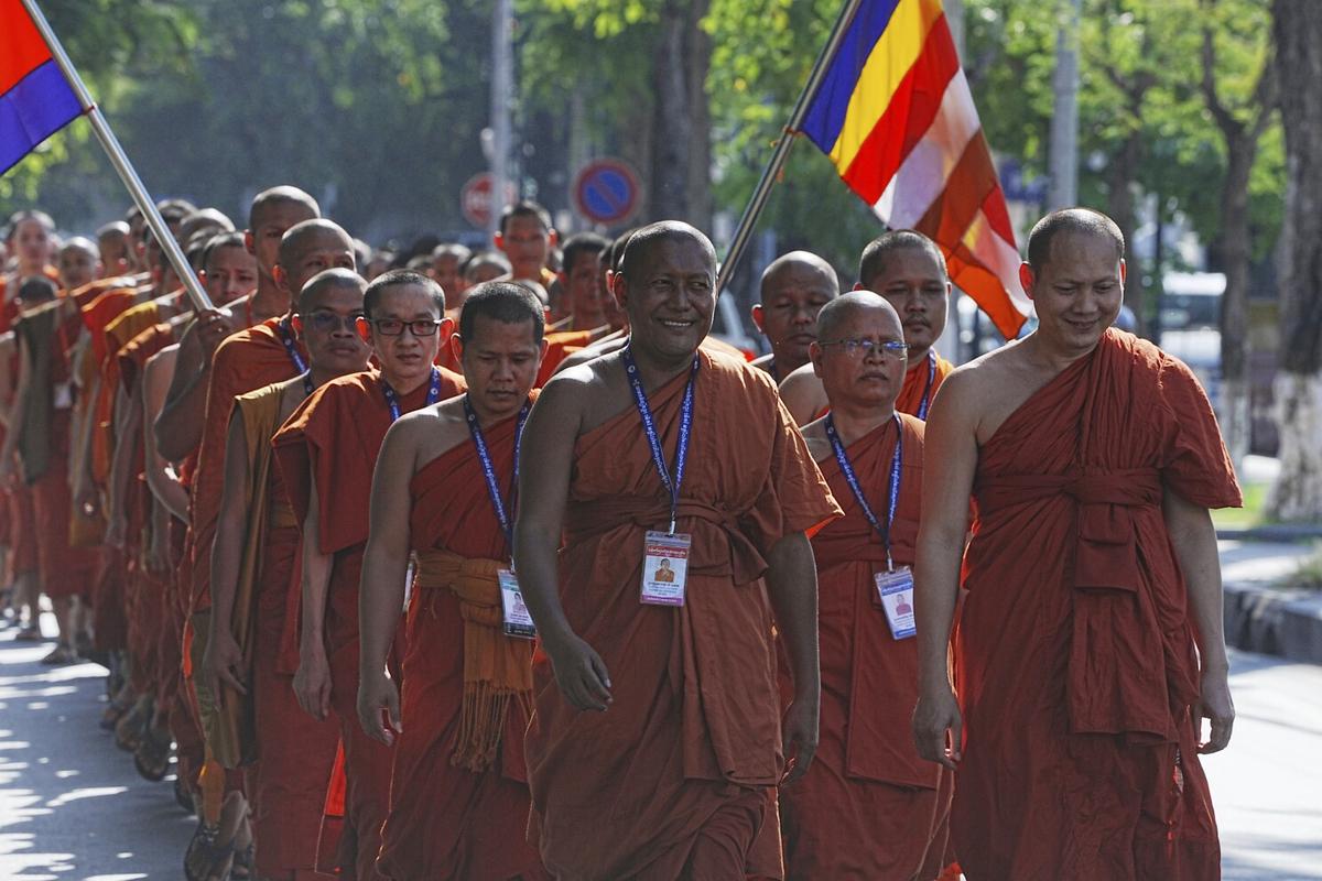 Marcharon desde la principal escuela religiosa del país, cerca del Palacio Real de la capital, Nom Pen, hasta un templo cercano, donde se les unieron monjas y laicos.