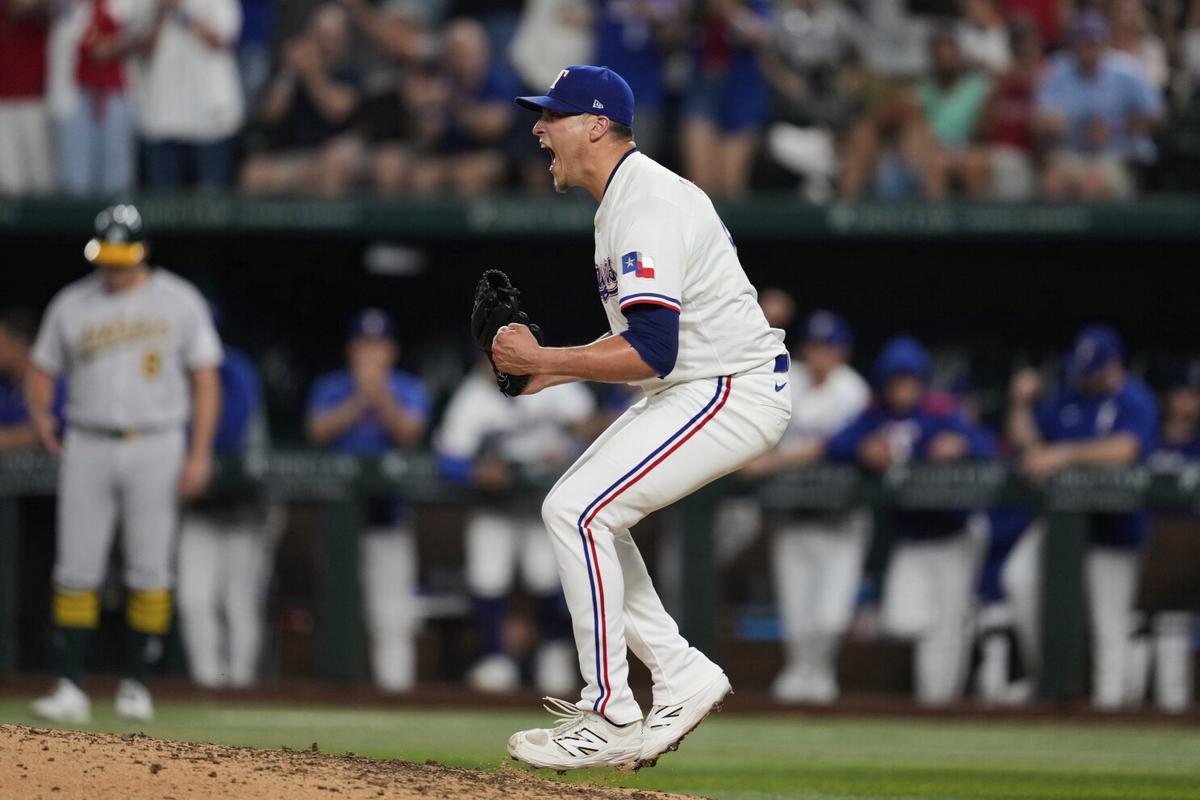 ARLINGTON, Texas, EE.UU. (AP) — Jonah Heim conectó un elevado que cayó entre dos jugadores en el jardín izquierdo y que permitió que Wyatt Langford anotara desde la primera base para que los Rangers de Texas vencieran el miércoles 2-1 a los Atléticos y completaran la barrida de la serie.