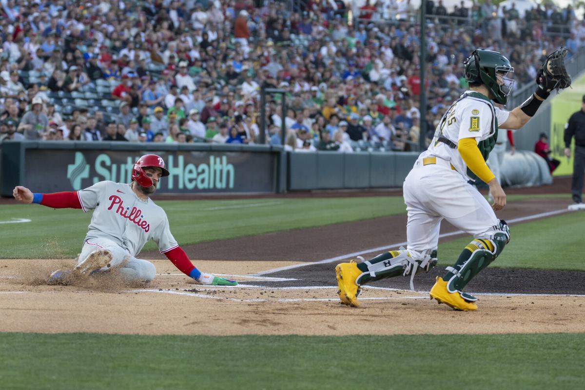 WEST SACRAMENTO, California, EE.UU. (AP) — Kyle Schwarber produjo un doblete de dos carreras en la undécima entrada, luego de haber logrado su 18vo jonrón, lo que condujo a los Filis de Filadelfia a una victoria de 9-6 frente a los Atléticos el sábado.
