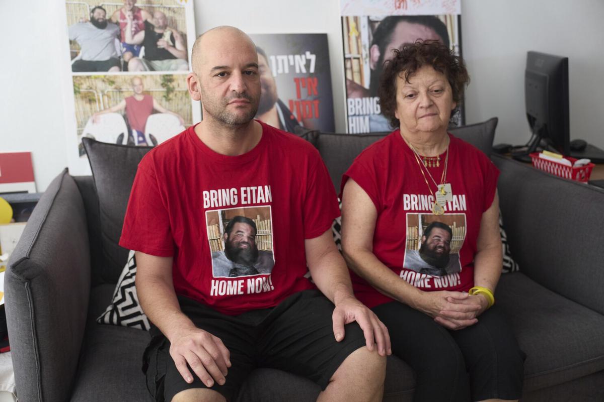 Sentados juntos en el sofá de su casa, toma la mano de Iair y espera con ilusión el día en que Eitan regrese.