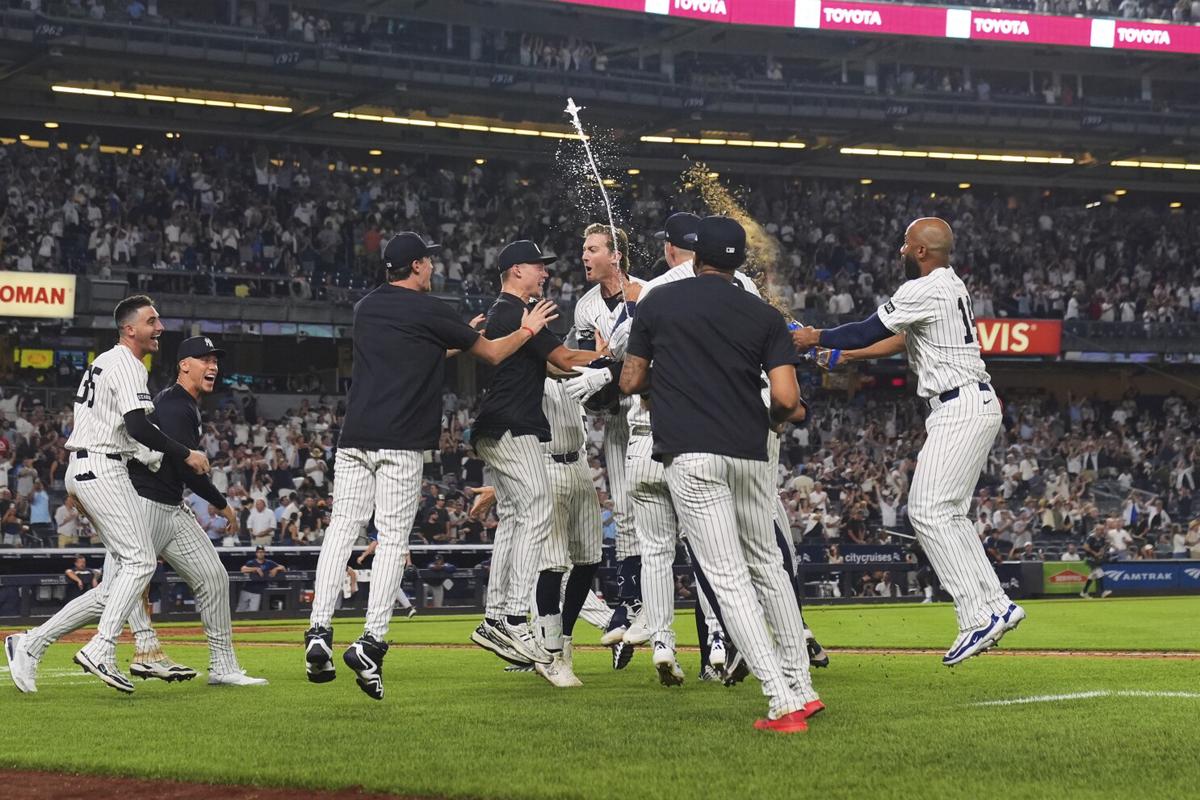 Trent Grisham conectó un jonrón para empatar en la octava, Anthony Volpe hizo lo mismo en la novena y Cody Bellinger igualó nuevamente para los Yankees con un triple impulsor en la décima.
