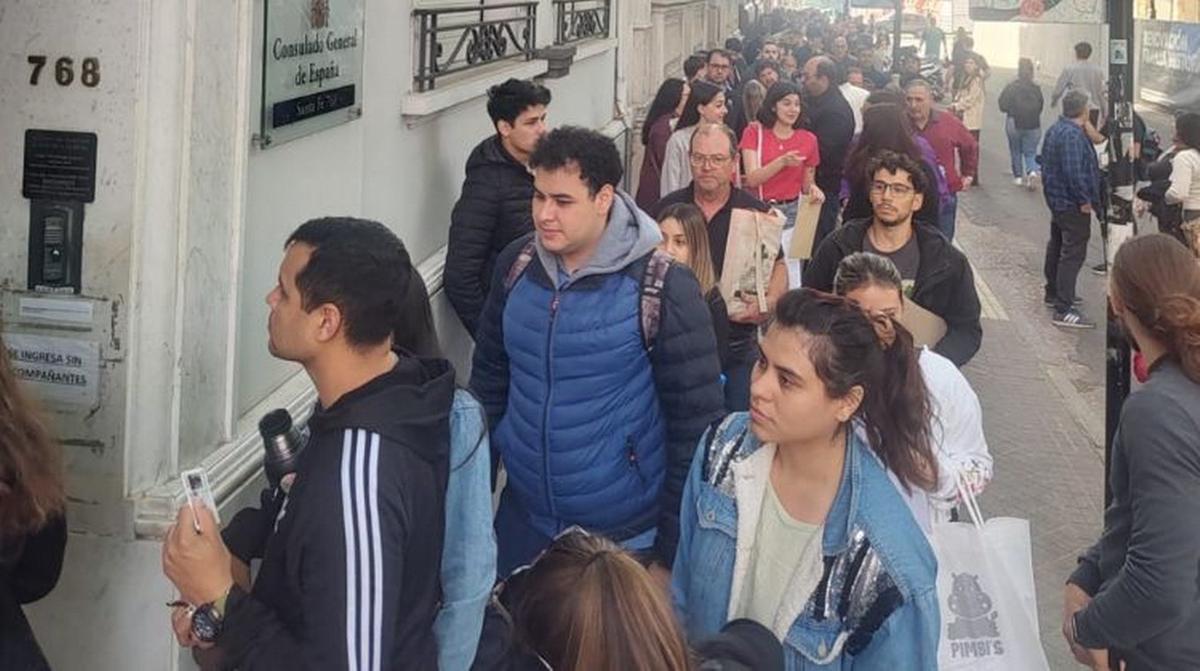 Este viernes, durante el feriado nacional, más de doscientos metros de fila se formaron frente al Consulado de España en Rosario, donde cientos de personas aguardaban para iniciar el trámite de ciudadanía española. La ley de nietos permite que quienes sean descendientes de españoles puedan gestionar la documentación presentando la partida de nacimiento de sus abuelos.