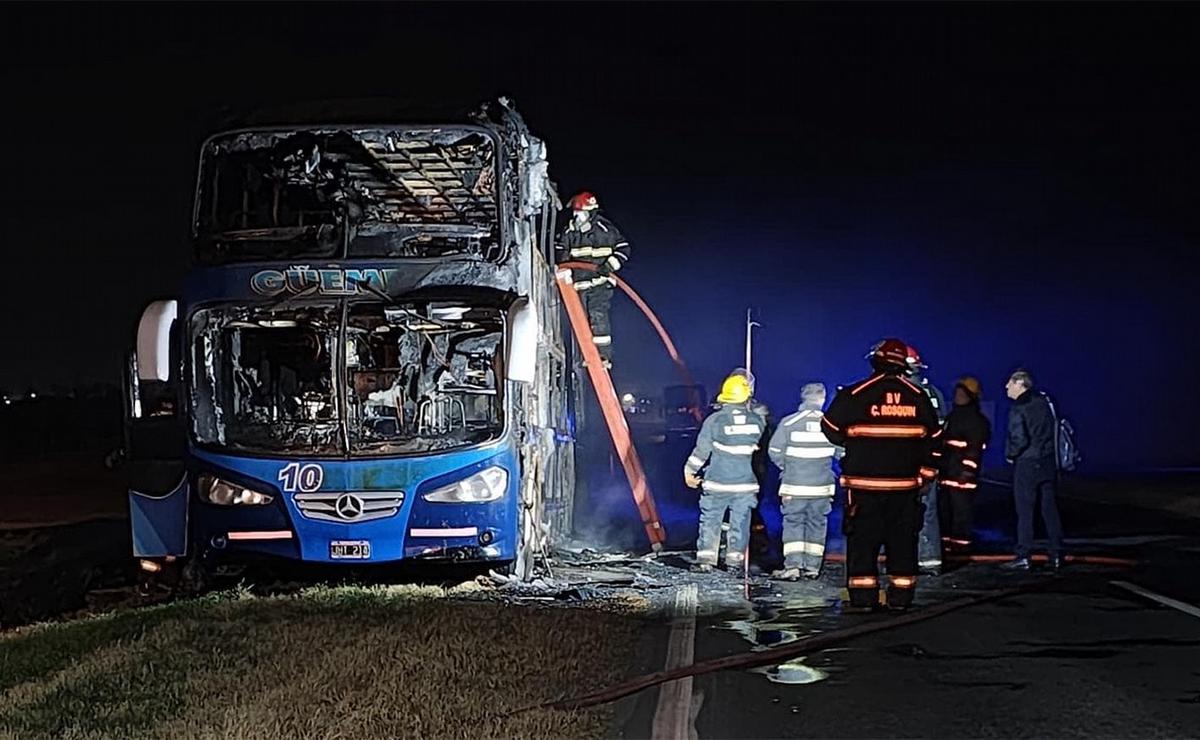 Este lunes por la tarde, un colectivo se incendió mientras circulaba por la Ruta Nacional 34, entre las localidades de Cañada Rosquín y Pueblo Casas, a unos 140 kilómetros al noroeste de Rosario. Afortunadamente, no se registraron víctimas.