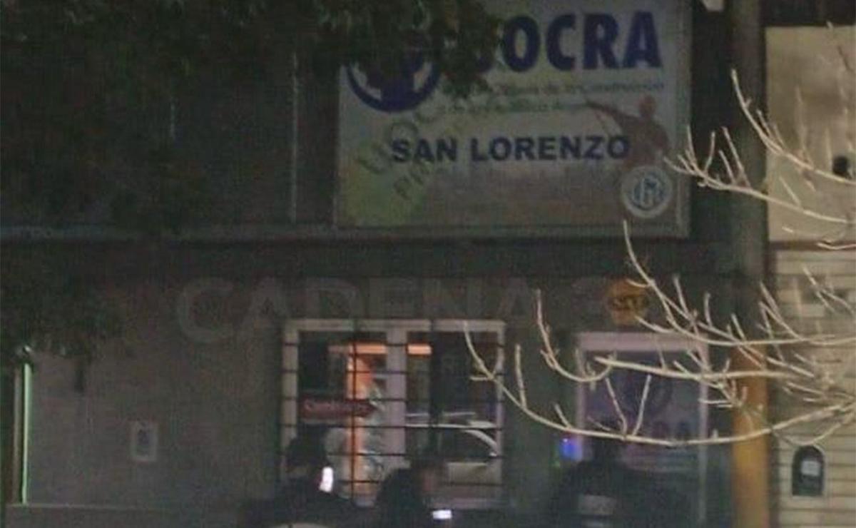 Cerca de las 20 horas, dos personas a bordo de una motocicleta abrieron fuego contra la sede de la Unión Obrera de la Construcción de la República Argentina (UOCRA), ubicada sobre calle Urquiza al 400, en la localidad de San Lorenzo.