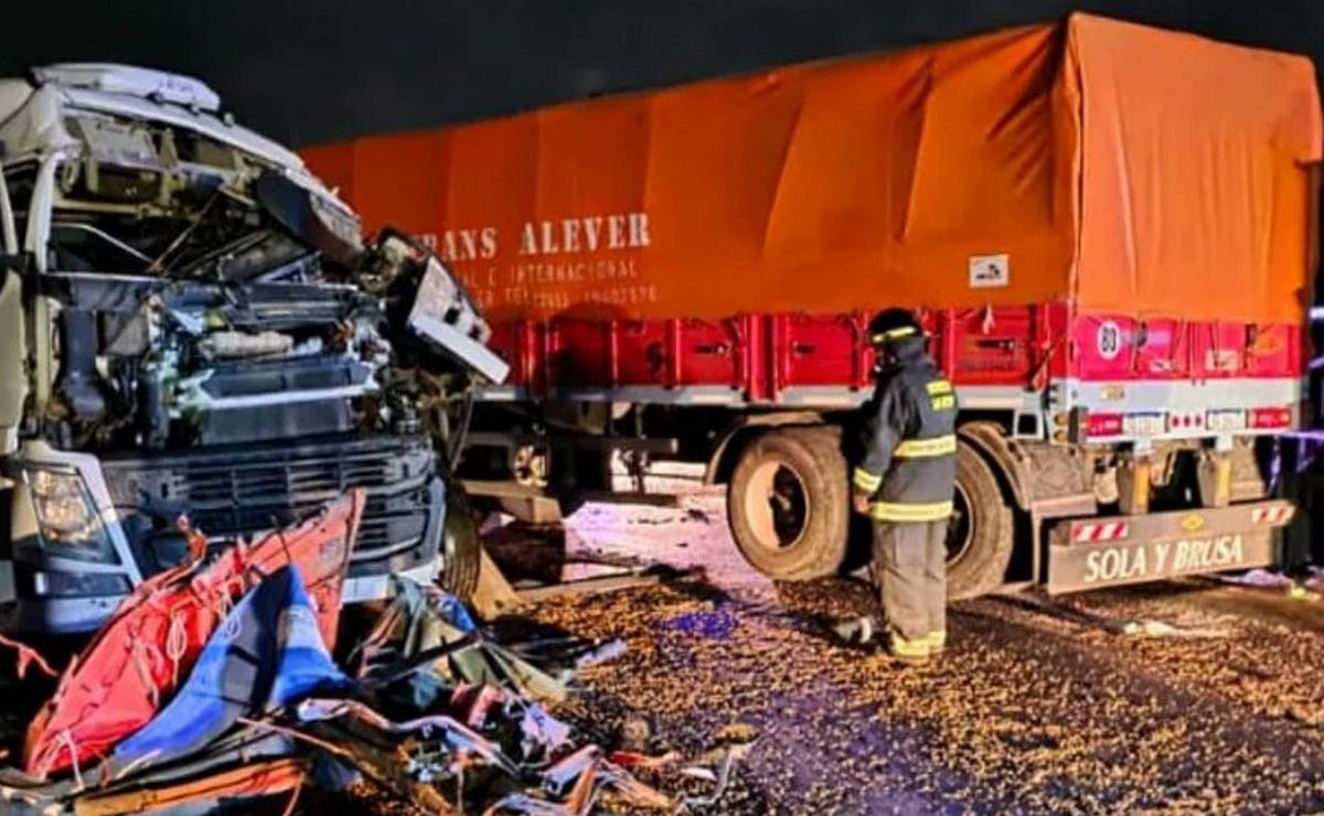 Durante la madrugada de este lunes se produjo un fuerte siniestro vial sobre la Ruta Nacional 11, a la altura del kilómetro 504, entre las localidades de Nelson e Iriondo. Dos camiones de carga protagonizaron un fuerte choque que dejó a sus conductores con lesiones y obligó a un corte total de tránsito en la zona.
