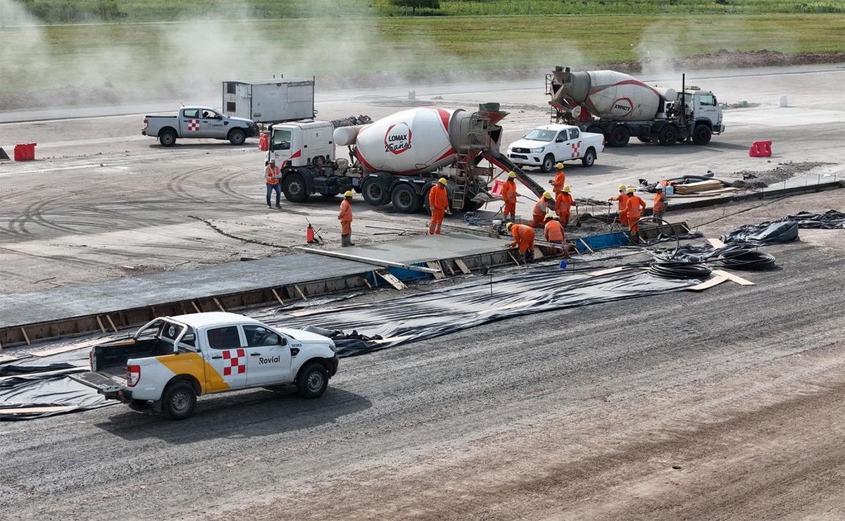 Durante el primer mes de trabajo se colocaron más de 14.000 toneladas de asfalto modificado. Entre las tareas realizadas se incluyen la demolición de sectores deteriorados, la estabilización granular y la colocación de hormigón en zonas estratégicas como la cabecera 02.