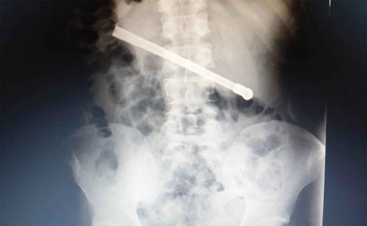 Tras ser evaluado en el servicio médico de la unidad penitenciaria, ubicada en 27 de Febrero al 7800, se le realizó una placa radiográfica que reveló la presencia del objeto metálico atravesado en el tórax.