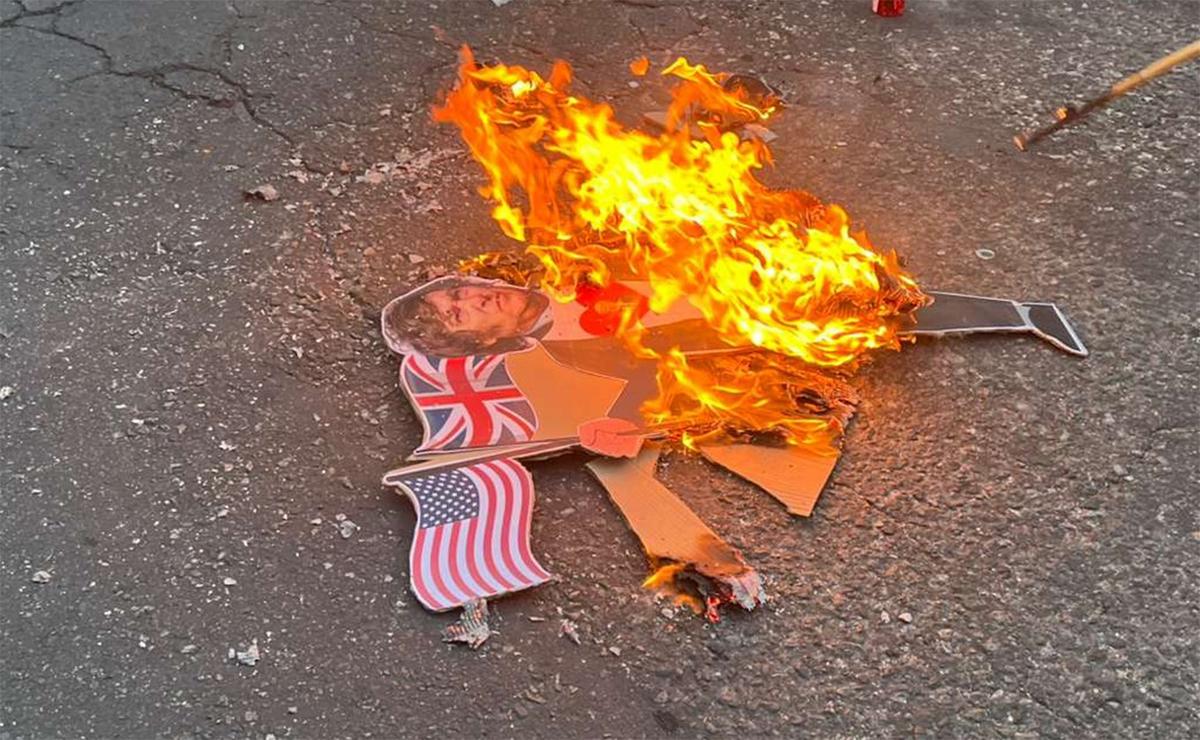 La marcha avanzó a pocos metros del parque España, donde, desde las 19, Milei encabezó un acto libertario en el marco de su cierre de campaña.