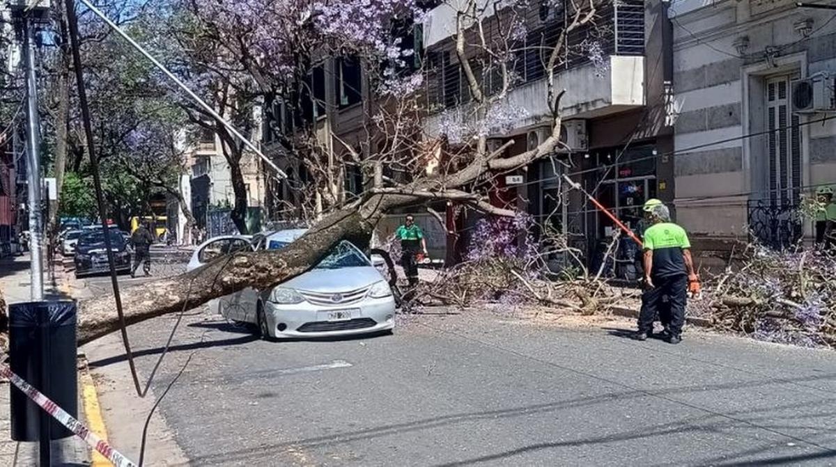 Un árbol se desplomó sobre un automóvil que transitaba por calle San Juan, entre Moreno y Dorrego. El vehículo, un Toyota Etios, era conducido por una joven que viajaba junto a su madre. Pese al impacto, ambas resultaron ilesas.