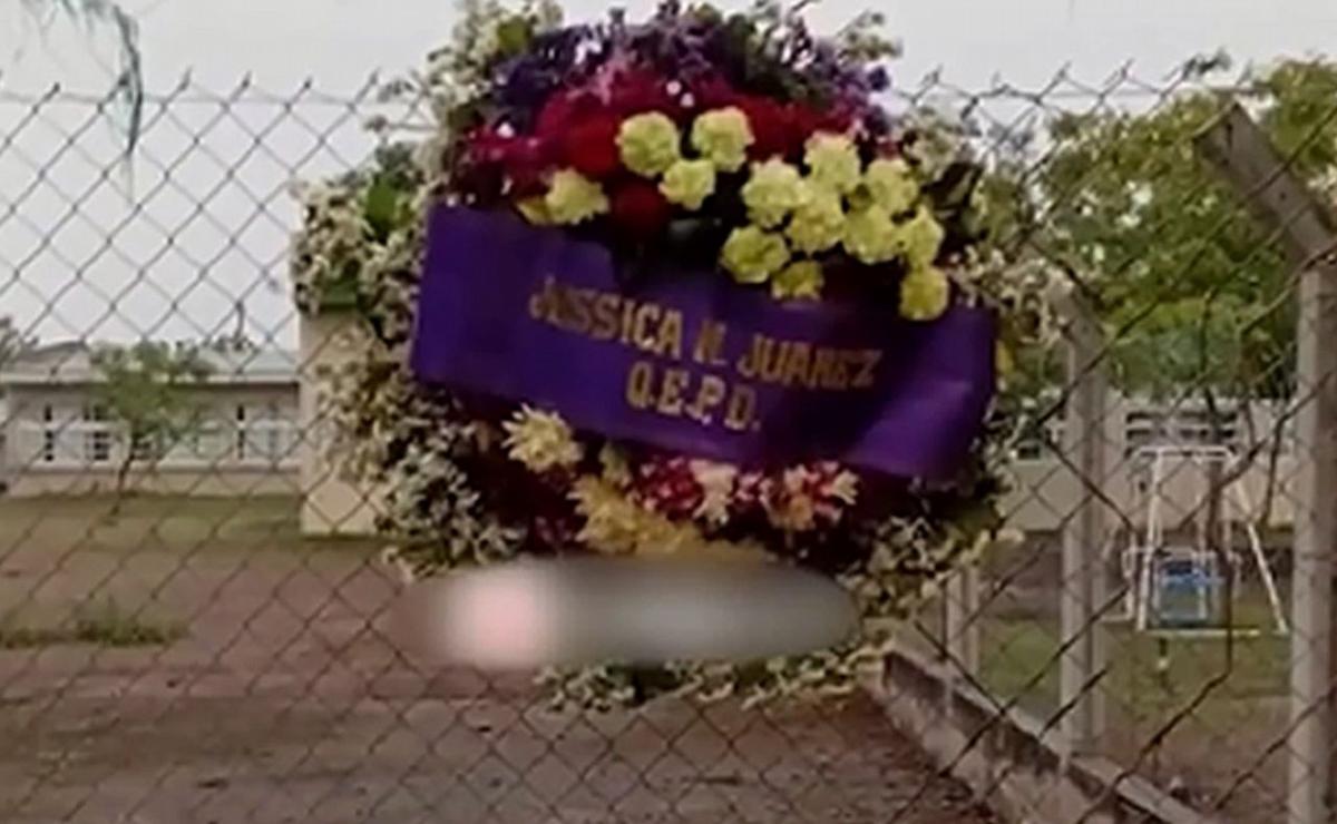 ¿Dónde se colocó la corona fúnebre? La corona fúnebre fue colocada en el alambrado del jardín de infantes al que asiste la hija de la mujer.
