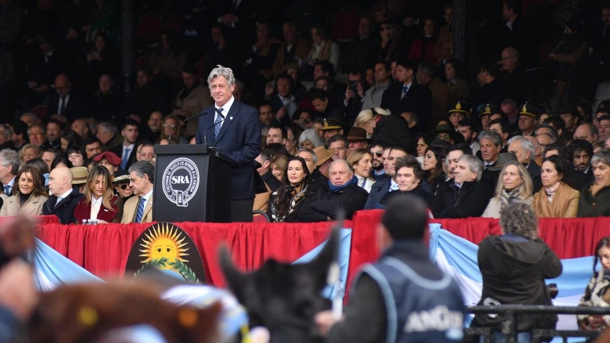 Desde la histórica tribuna de Palermo, Pino repasó los principales desafíos que enfrenta el sector agropecuario y reiteró el compromiso del campo con el desarrollo del país. “La Sociedad Rural siempre será parte de la solución y no del problema”, dijo.