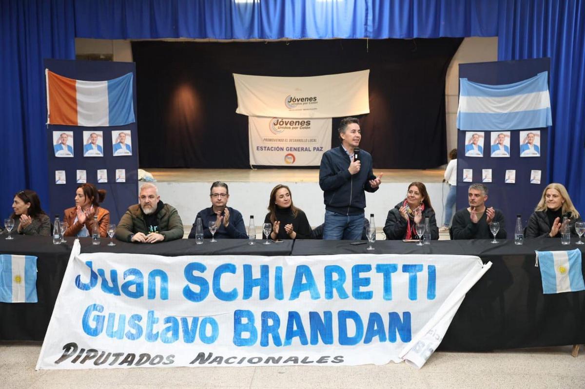 El acto en respaldo a la candidatura a diputado nacional del exgobernador Juan Schiaretti, contó con la presencia de la vicegobernadora Myrian Prunotto; el jefe de campaña y ministro de Gobierno Manuel Calvo; Gustavo Brandán, candidato a diputado nacional y ministro de Cooperativas y Mutuales, y el intendente local Darío Arata, entre otros.