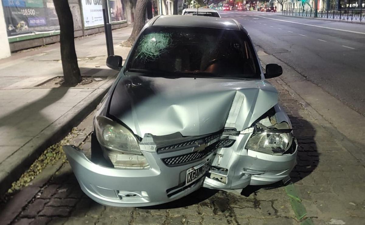 El impacto se dio en el cantero central de la avenida, contra la garita en la que los pasajeros esperan el paso de los colectivos.