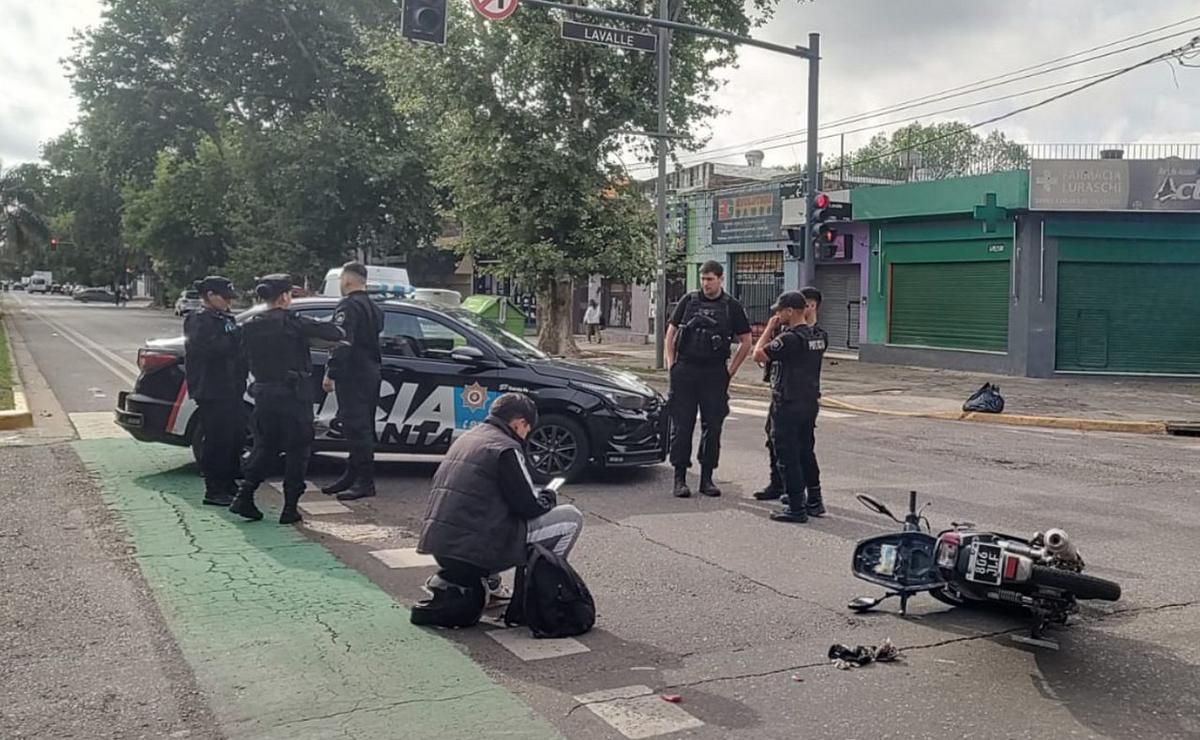 ¿Qué ocurrió en la intersección de Pellegrini y Lavalle? Un accidente de tránsito involucró un móvil de la Policía y una motocicleta.