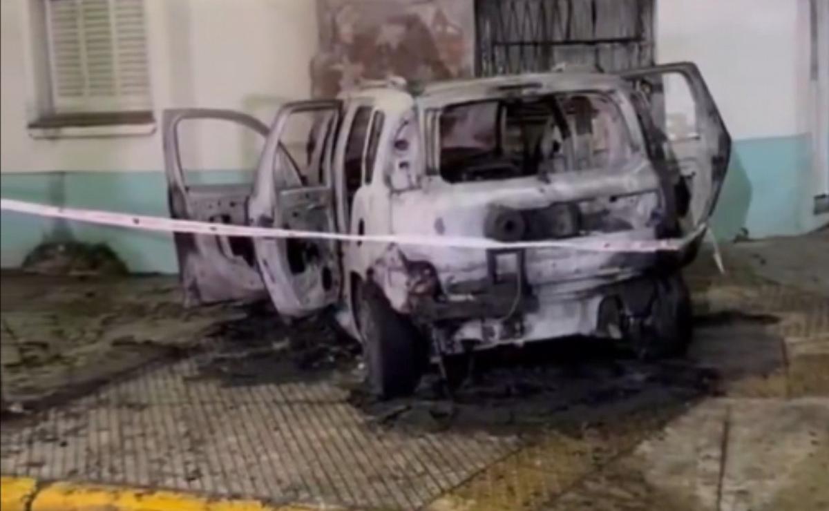 El fuego avanzó en la totalidad de la carrocería de la camioneta, afectando también la fachada de la vivienda.