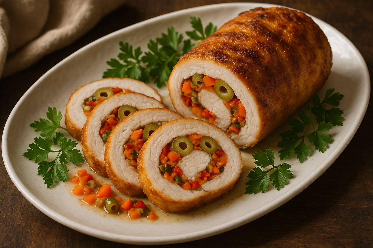 Tradicionalmente, el arrollado de pollo se elabora con pechuga, que se aplana y se rellena con una variedad de ingredientes que pueden incluir jamón, queso, verduras y especias. Su popularidad radica no solo en el sabor, sino también en la facilidad de preparación, ya que se puede hacer con anticipación y resulta ideal para servir en picadas o como plato principal.