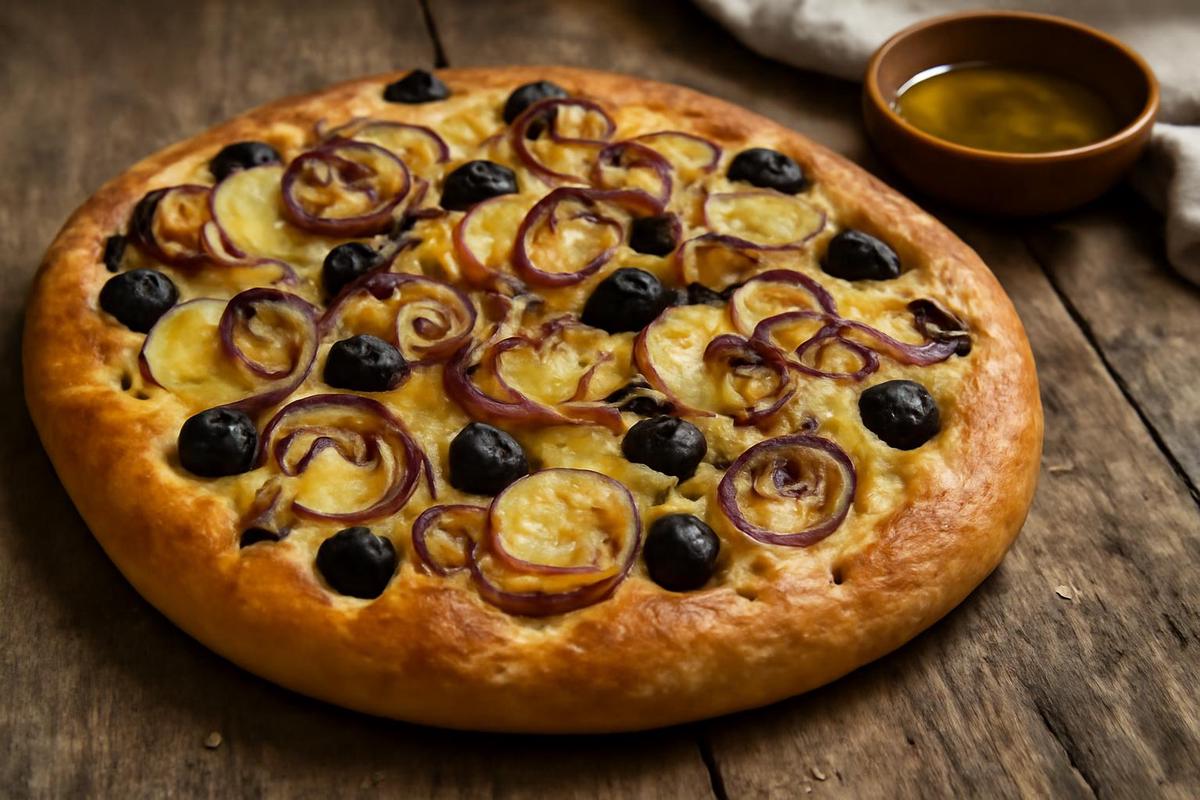 La focaccia, un pan plano de origen italiano, se caracteriza por su textura esponjosa y su costra crujiente. Este pan versátil permite una gran variedad de combinaciones de ingredientes, y en esta ocasión se presentará una receta de focaccia estilo Mediterránea, que incluye cebolla, papa y aceitunas.