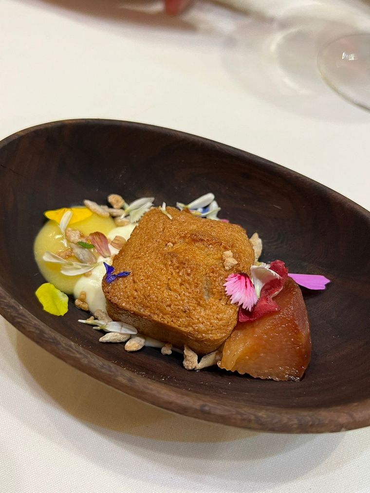 Los postres fueron maridados con un vino Kungfu Pet Nat y empezaron con higos, castañas de cajú y avellanas. Finalmente, la cena terminó con un curd de limón, membrillos y financier.