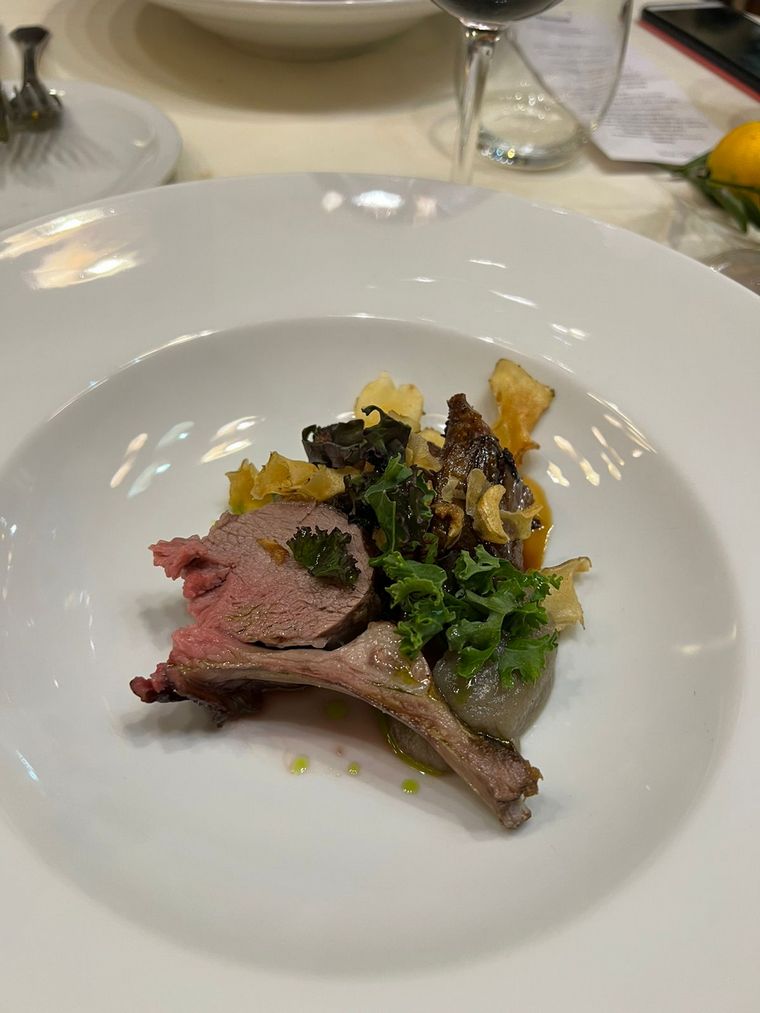 El tercer plato fue un chivito con garbanzos y gírgolas maridado con un Riccitelli Malbec de la Patagonia. El cuarto un cordero de cara negra con topinambur maridado con un Riccitelli & Father.