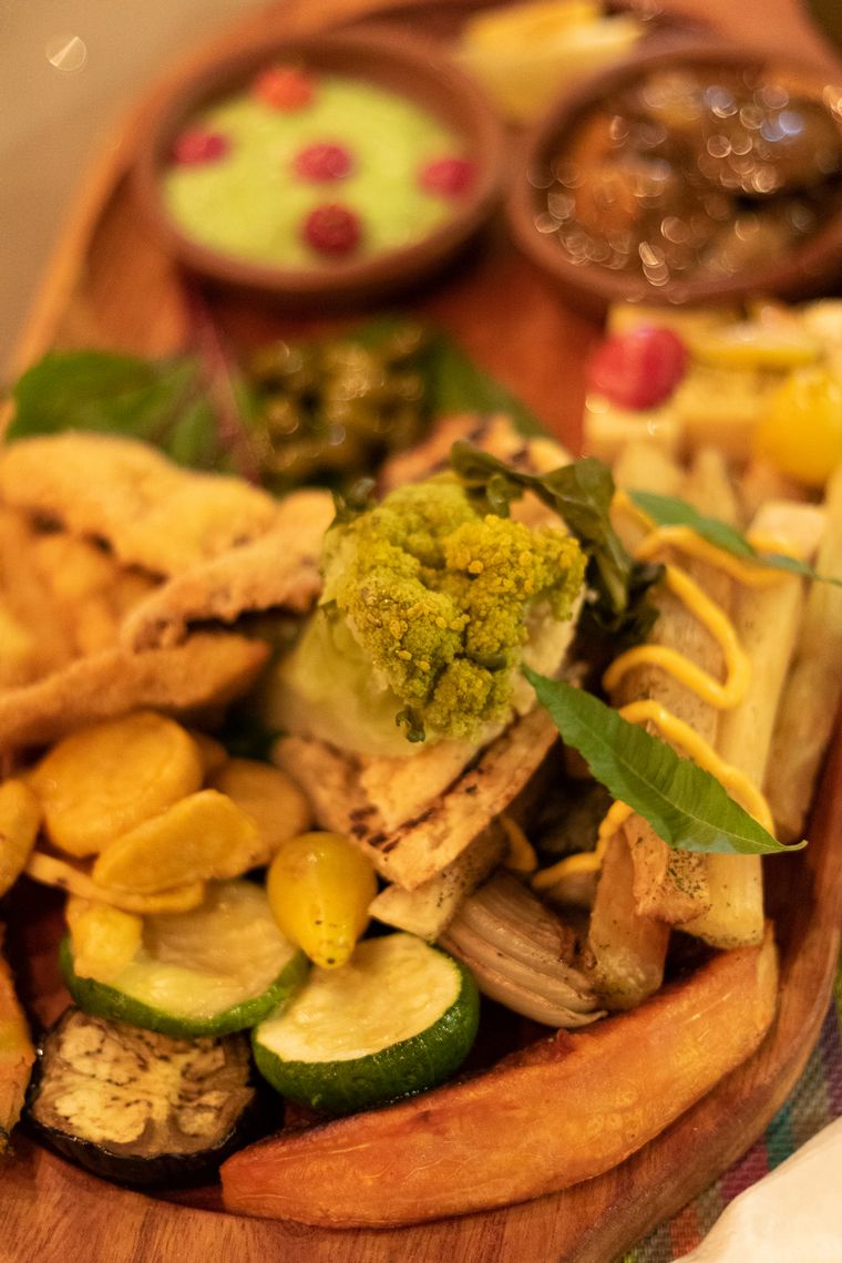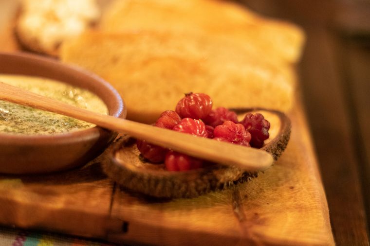Algunas de las opciones que se pueden disfrutar en su restaurante son: boga con vegetales asados de temporada, mbejú -una masa de almidón de mandioca-, queso de chacra, pepinitos silvestres y escabeche de hongos de pino.