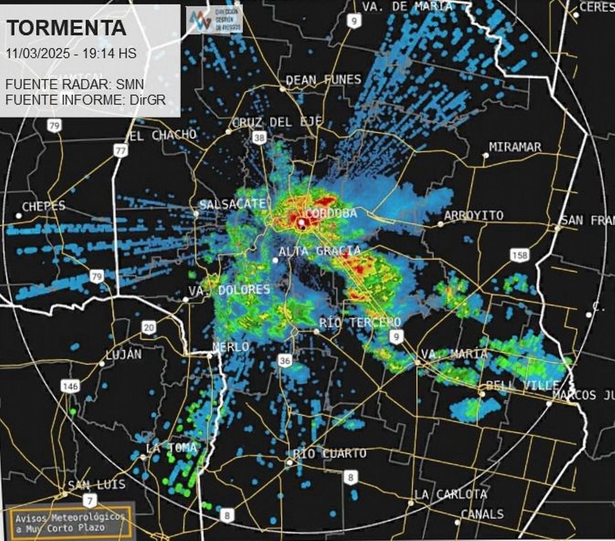 Lo informó a Cadena 3 el secretario de Seguridad y Prevención Comunitaria de la Municipalidad, Claudio Vignetta. “La intensidad ha sido altísima”, dijo. Advirtió que en las próximas horas podría haber más precipitaciones.
