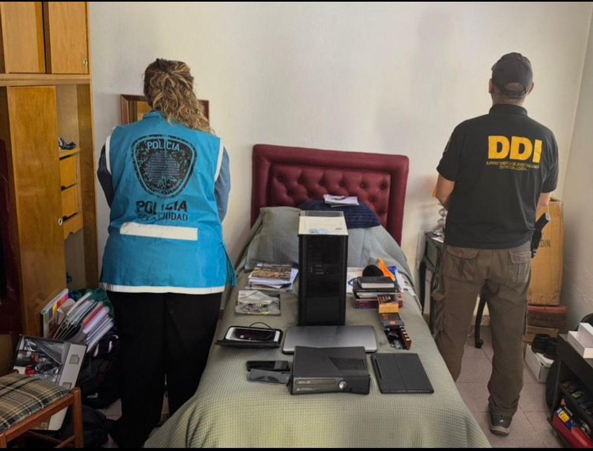 Efectivos de la División Antiterrorista de la Policía de la Ciudad incautó computadoras, celulares, notebooks, tablets, documentación religiosa, entre ellos una Ketubah, una Torá y diversos libros y folletos vinculados a la comunidad judía.