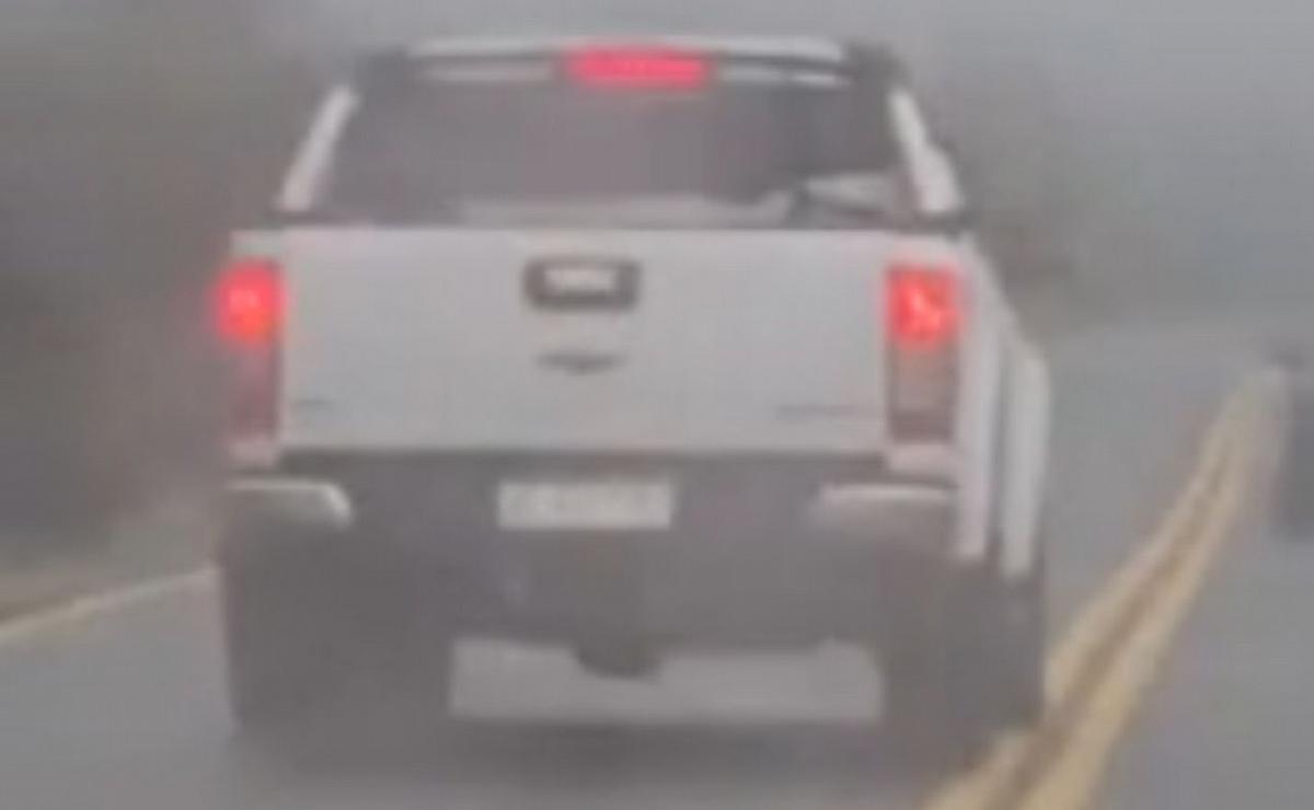 Un nuevo caso de imprudencia al volante quedó registrado este sábado en las Altas Cumbres, cuando una camioneta fue filmada cruzando en doble línea amarilla en medio de lluvias intensas y visibilidad reducida por niebla.