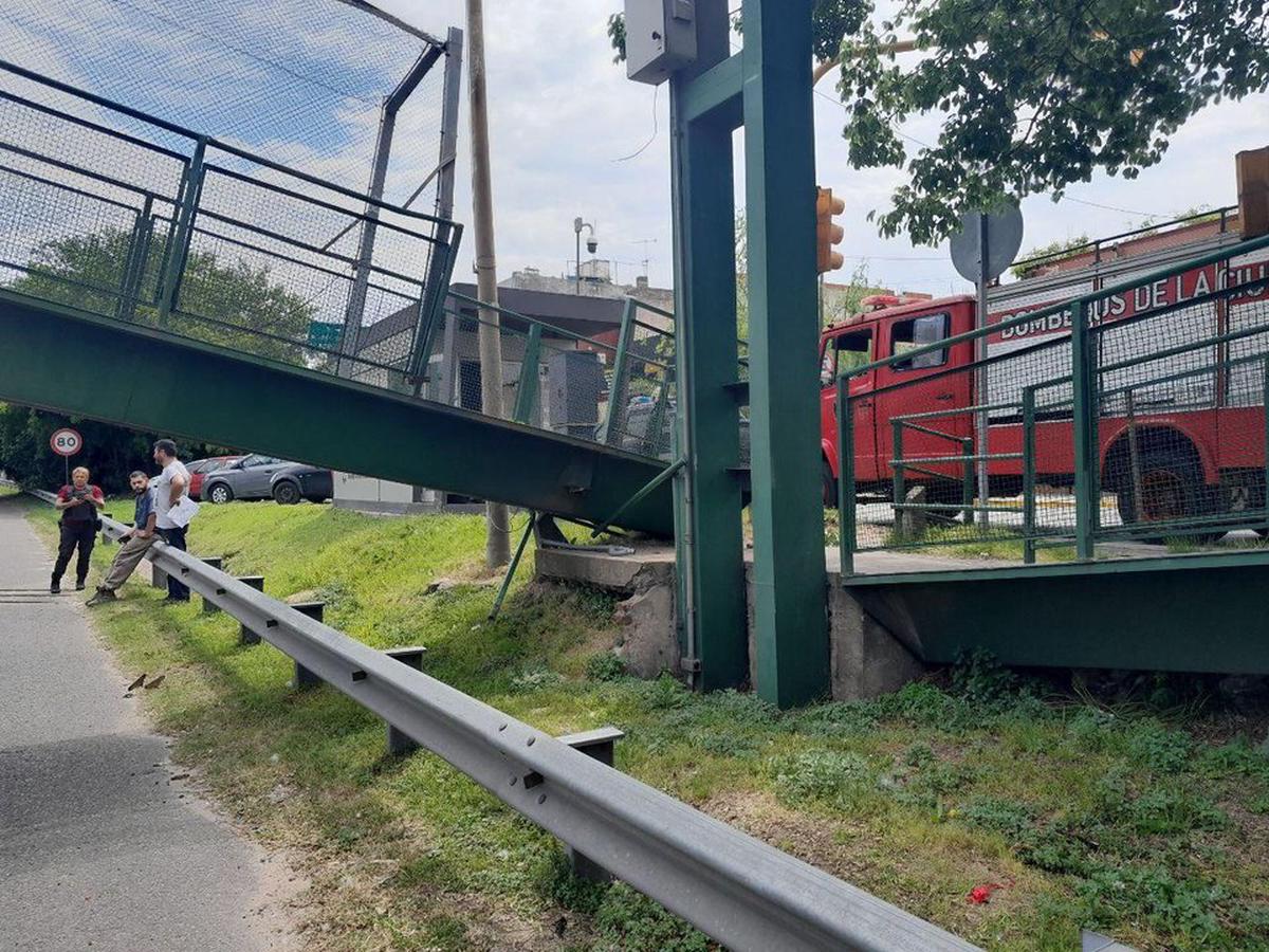 Se produjo el derrumbe parcial de un puente peatonal sobre la General Paz tras el choque de un camión.