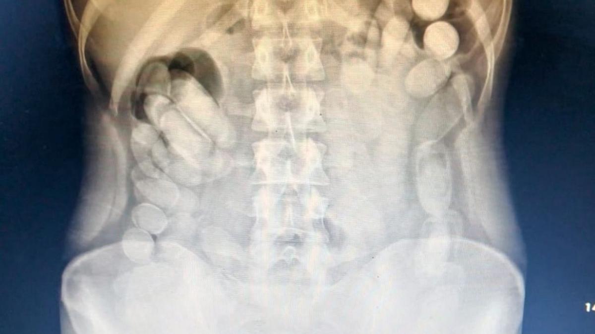 Al llegar al hospital, se le realizó una radiografía que confirmó la presencia de cápsulas en su abdomen. Posteriormente, evacuó un total de 106 cápsulas. Una vez sometidos los 118 envoltorios cilíndricos al Narcotest, el resultado fue positivo para cocaína, alcanzando un peso total de 1 kilo 388 gramos.