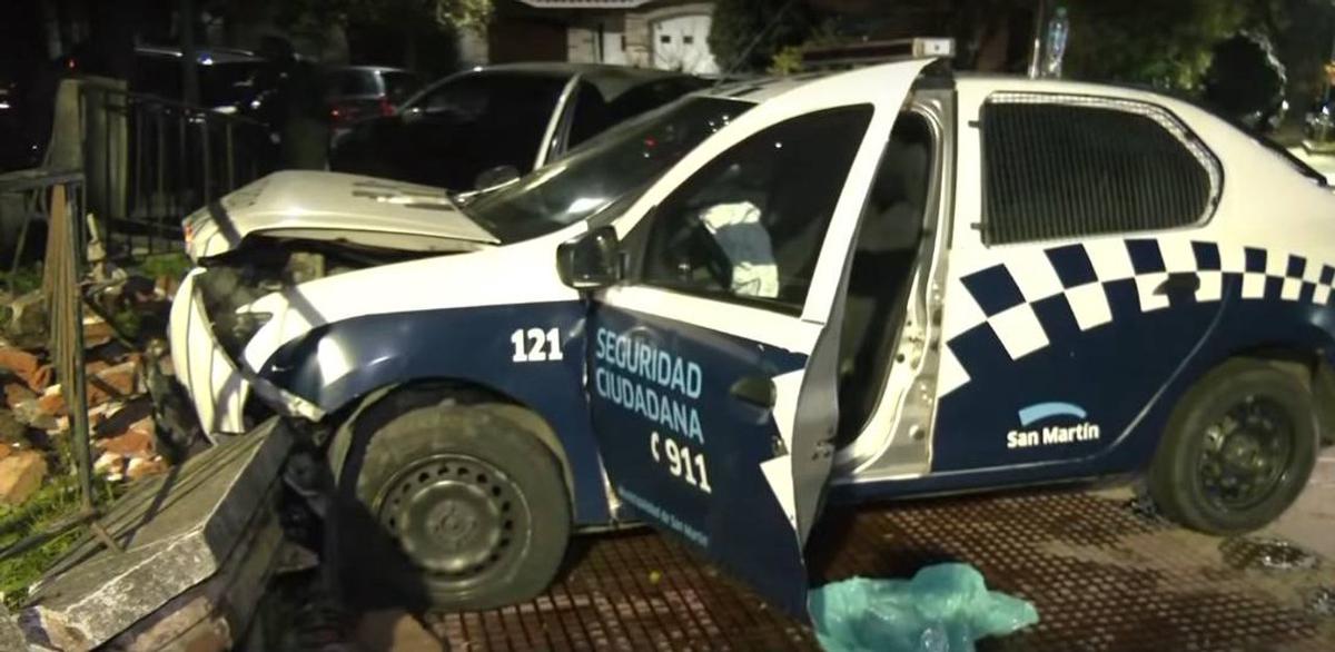 La persecución policial culminó en un accidente en Victorino de la Plaza al 1600, donde un patrullero chocó contra una vivienda.