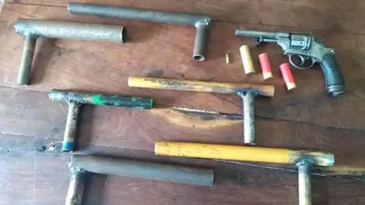 Al ingresar, los agentes encontraron una “tumbera” escondida en una cubierta de camión, además de un cartucho calibre 22 y dos resorteras.