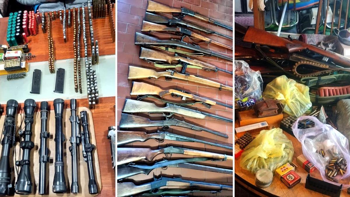 “Entre las armas se encontraban rifles, carabinas, escopetas, revólveres y pistolas, junto con dos granadas inertes, una munición de mortero calibre 81 mm también inerte, espoletas, munición antiaérea, una pistola de aire comprimido y cientos de cartuchos y municiones de distintos calibres”, indicaron.