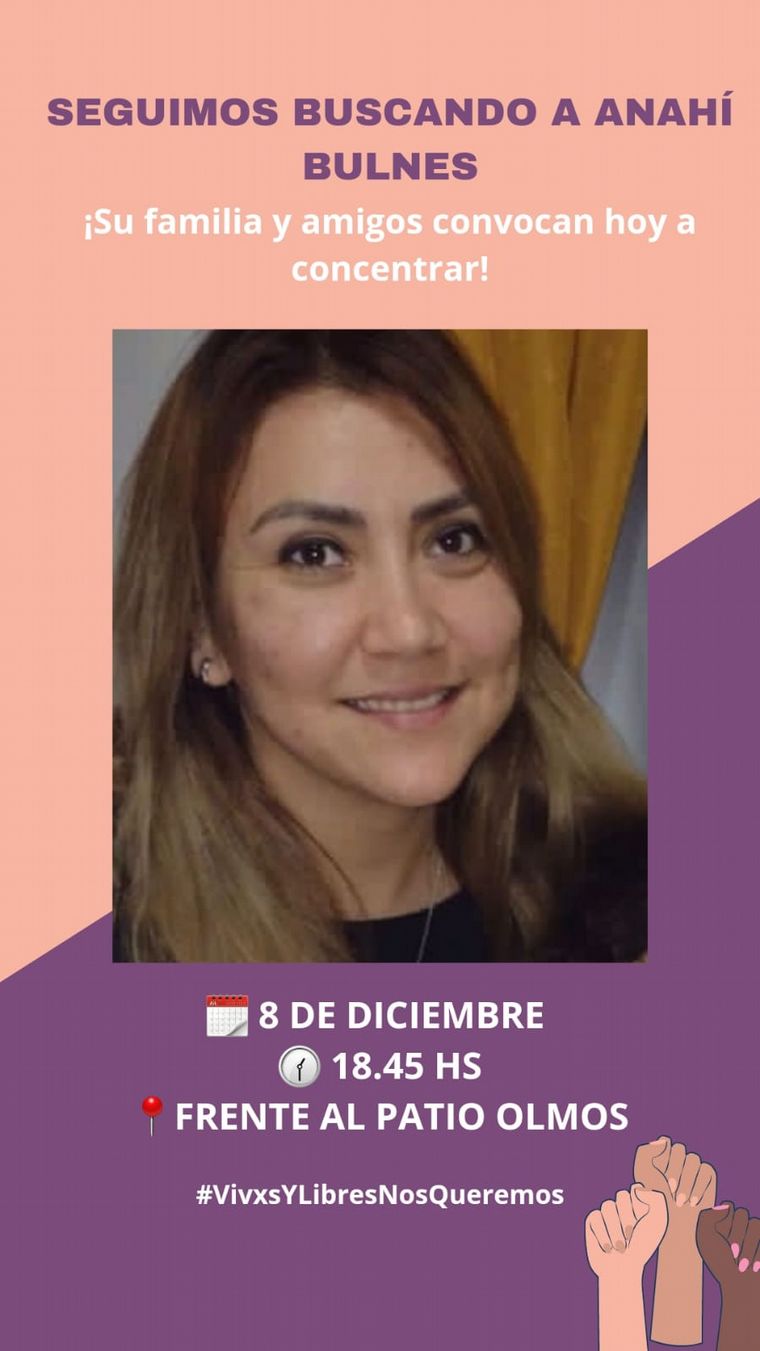 Distintas fuerzas especializadas de la policía de Córdoba, a instancia de la justicia, trabajaban en la búsqueda de la docente Anahí Bulnes, de 36 años, quien fue vista por última vez el pasado domingo en barrio Altos Sud de San Vicente, en la capital provincial.