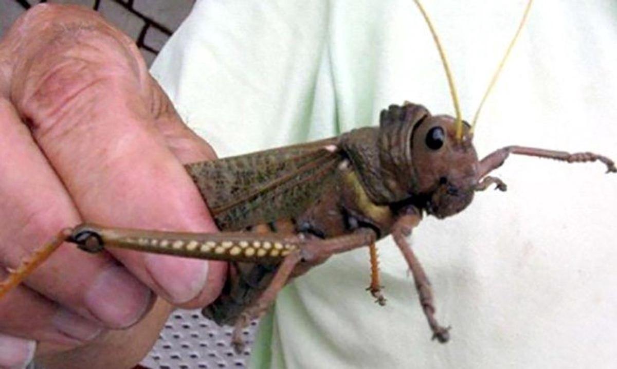 Es similar a una langosta o saltamontes, con cuerpo robusto y patas grandes que le permiten saltar.