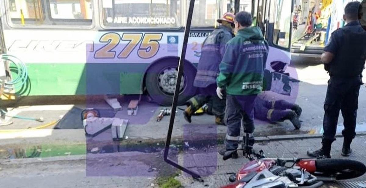 ¿Qué ocurrió en Ensenada? Un motociclista quedó atrapado debajo de un colectivo tras un choque.