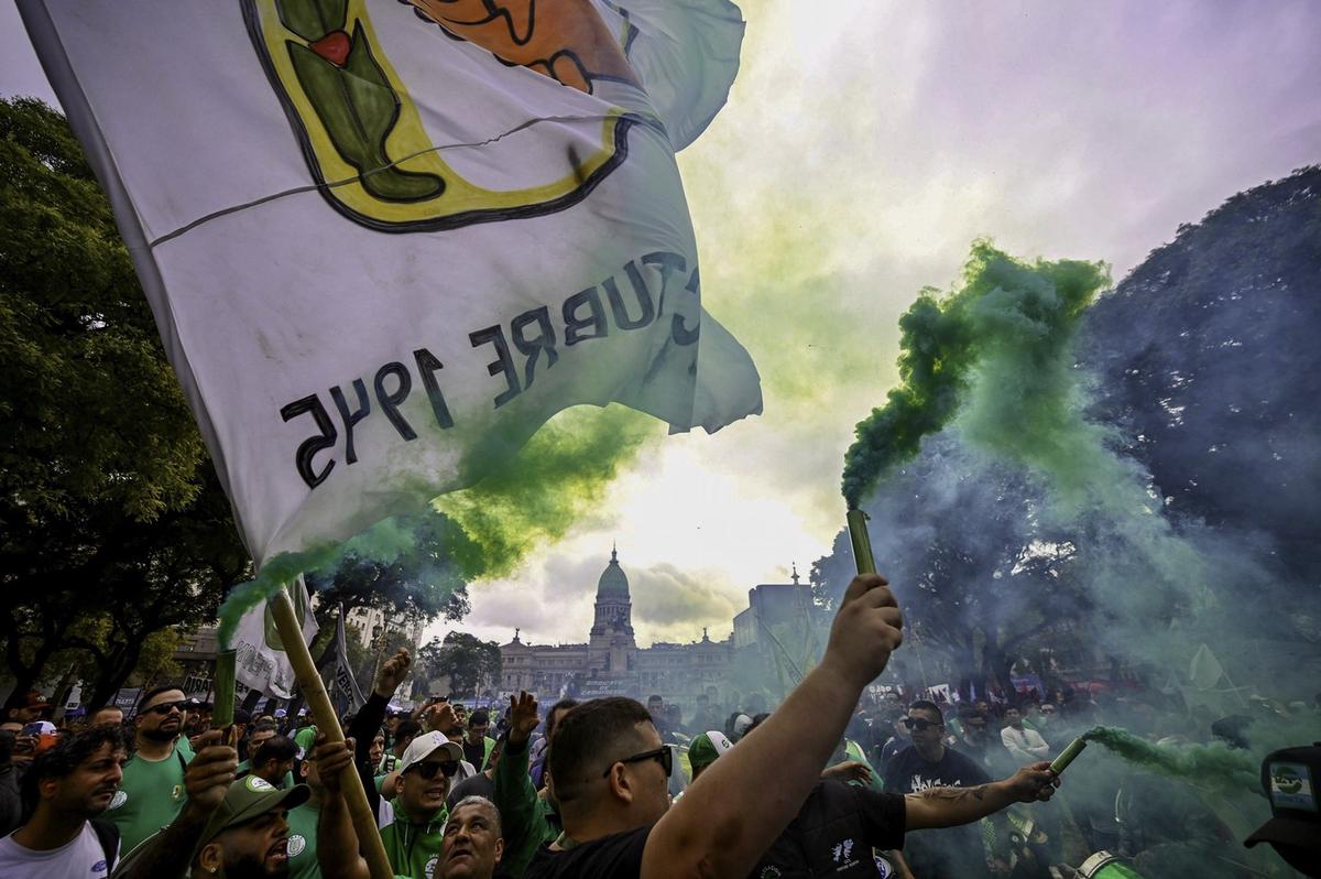 Gremios de la CGT se movilizan al Congreso en la previa del paro general