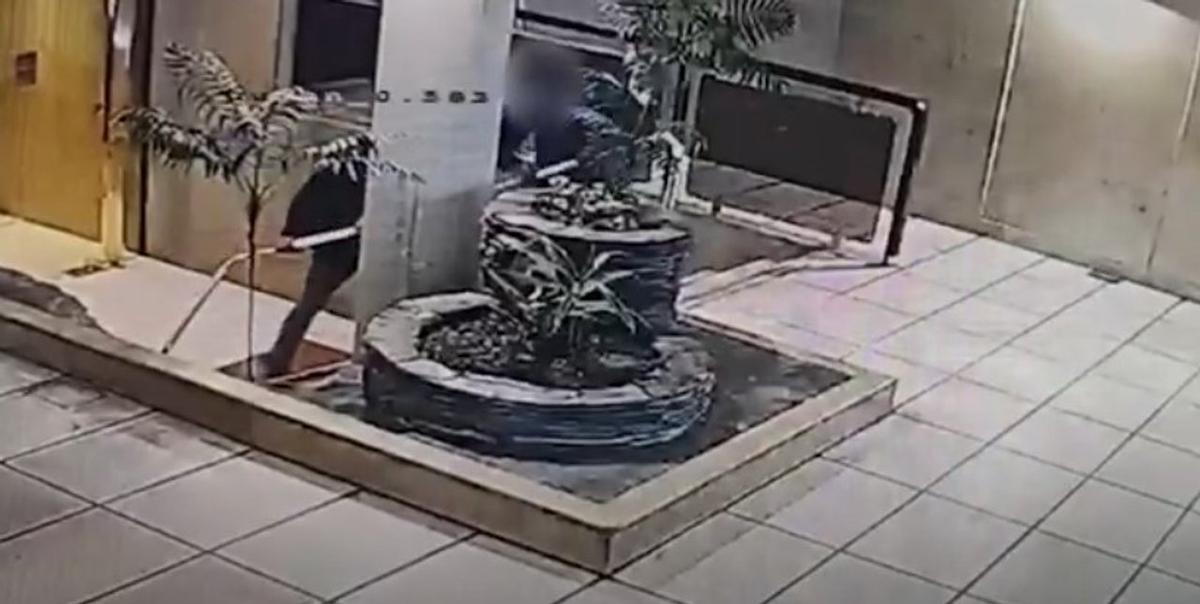 El hombre, que estaba desnudo, también rompió un vidrio del edificio.