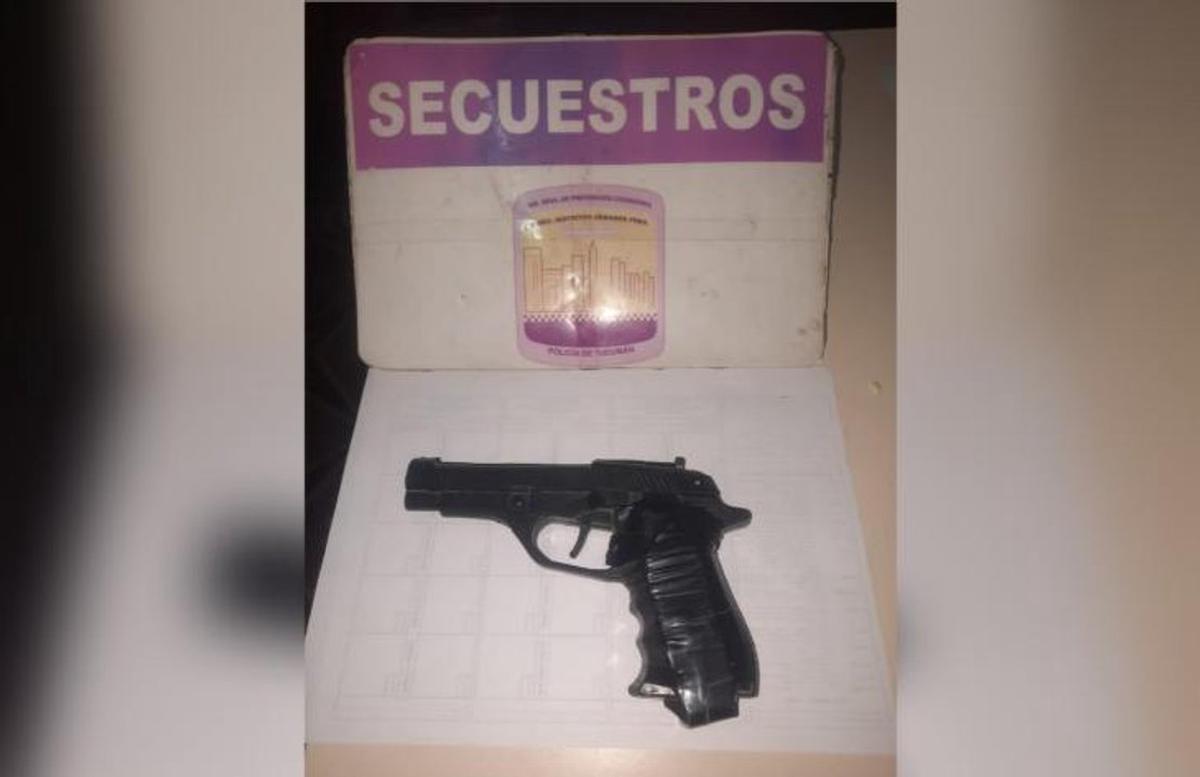 Tras una persecución, los agentes lograron darle alcance y, durante una requisa, le hallaron una réplica de pistola de 9 mm de color negra, con modificaciones en su empuñadura.