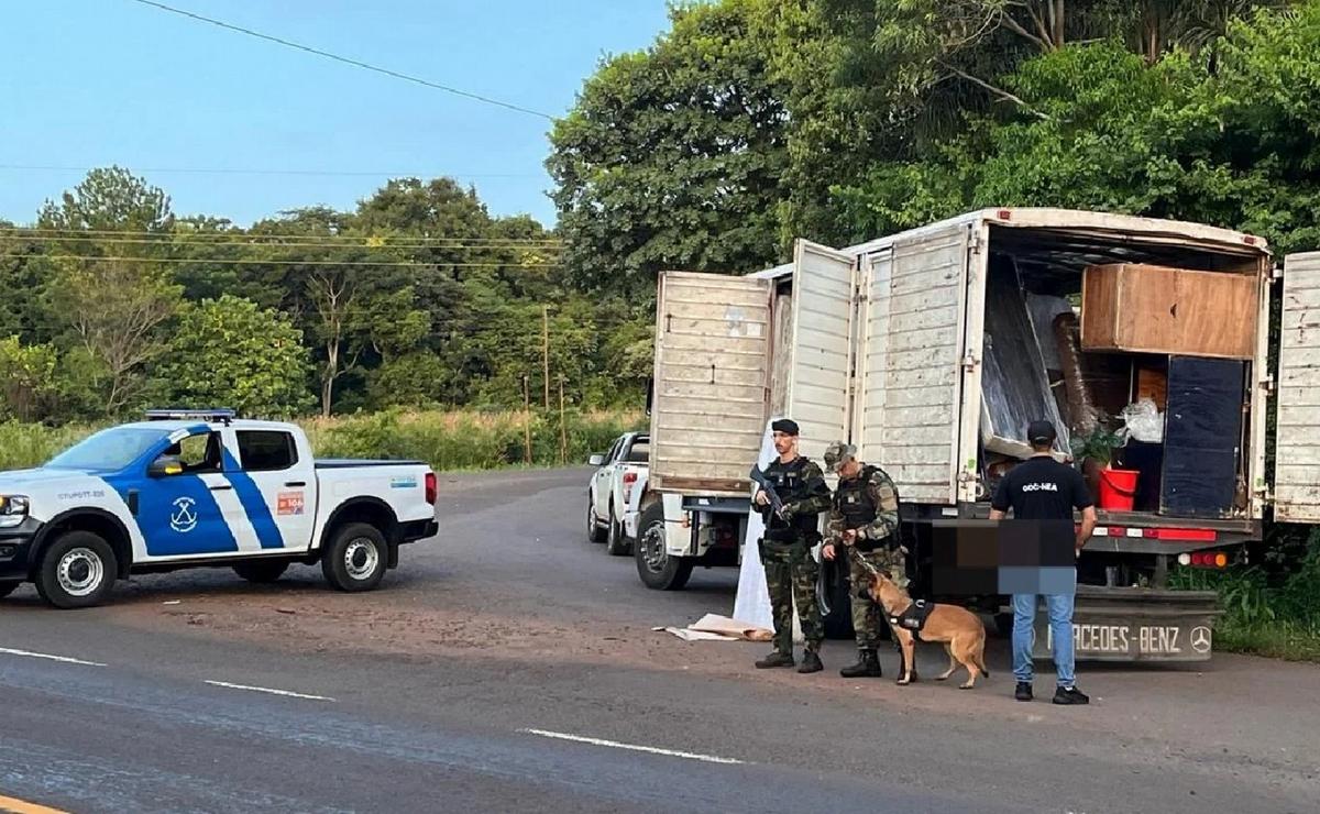 Se montó un control vehicular a la altura del kilómetro 1457 de la ruta nacional 12, en el ingreso a la zona "Papel Misionero", en la ciudad misionera de Garuhape, a 100 km de Eldorado.