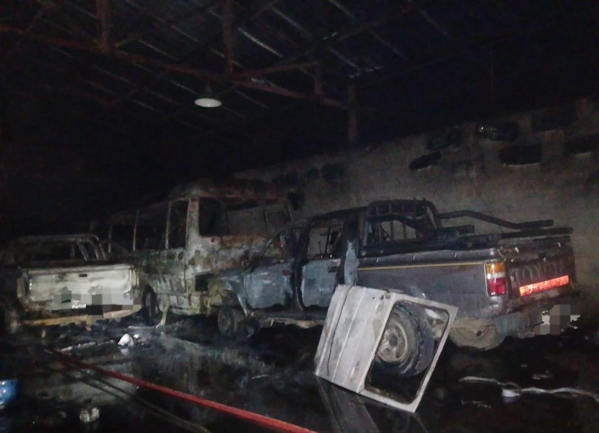 El fuego, que se originó en el interior del galpón por motivos que aún se investigan, consumió dos mini colectivos, dos camionetas y dos autos de Seguridad Ciudadana, todos propiedad del municipio.