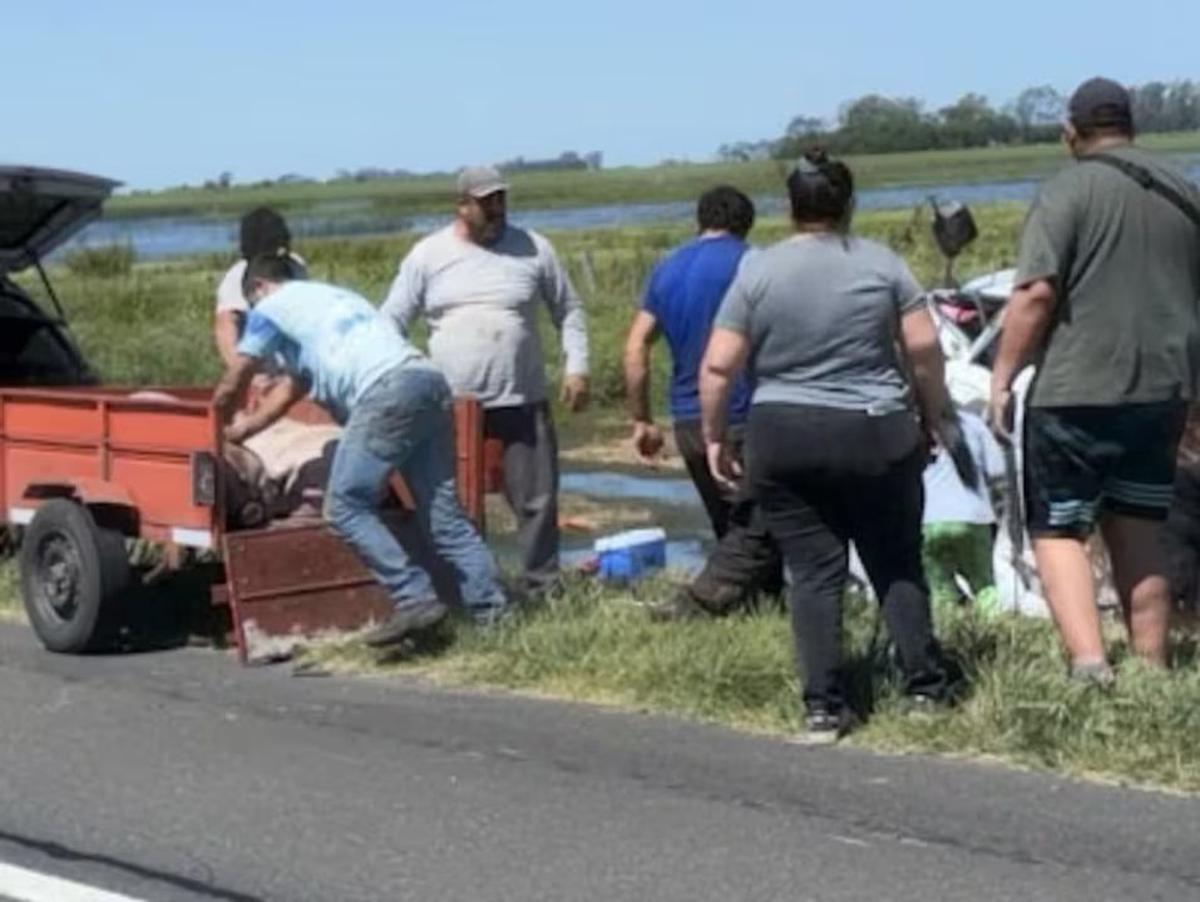 Un camión jaula que transportaba cerdos volcó en la Ruta Nacional 7 a la altura de la localidad bonaerense de Ingeniero Silveyra y, en cuanto se enteraron de la noticia, los vecinos de la zona se acercaron para llevarse a los animales, ya sea vivos o muertos.