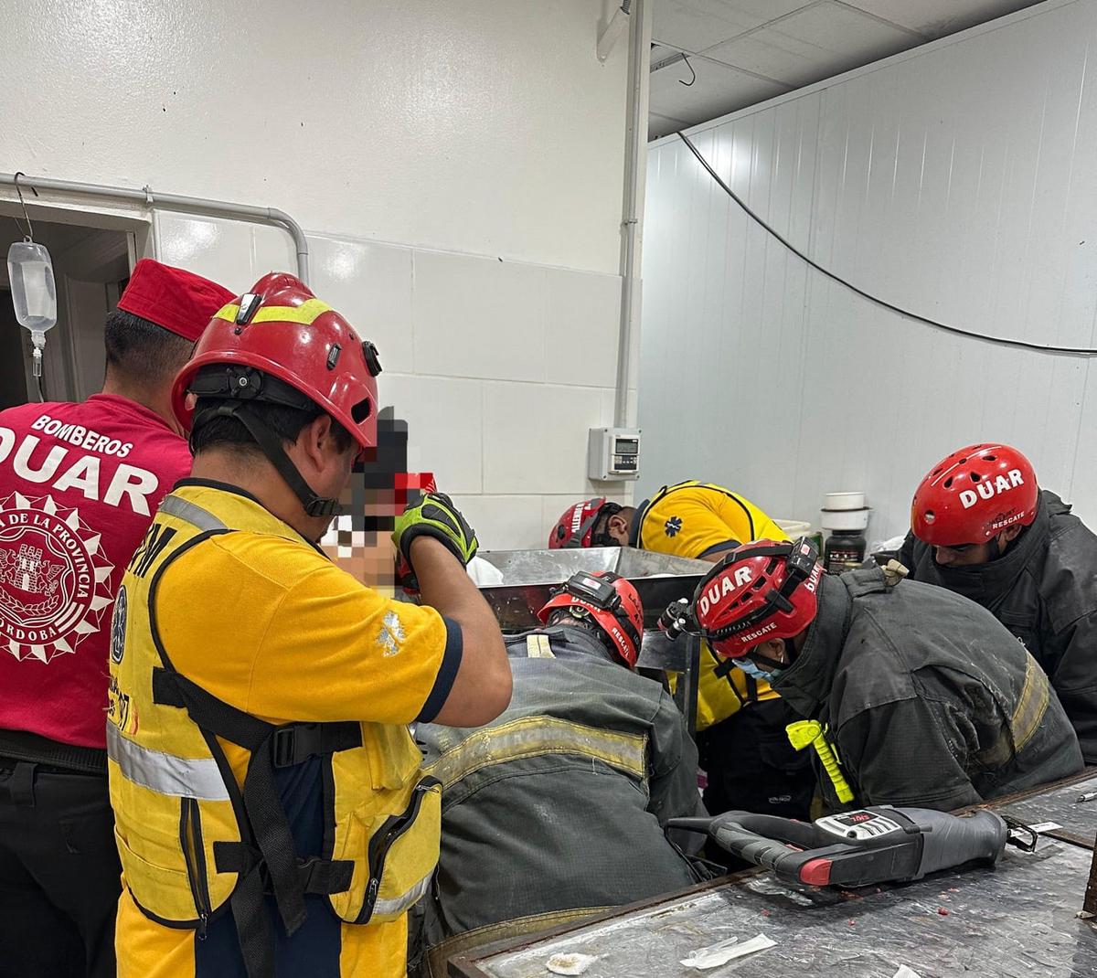 Efectivos de la Dirección Bomberos de la Policía de Córdoba y personal del DUAR acudieron al lugar y trabajaron junto al servicio de emergencias 107, aplicando técnicas de rescate y utilizando herramientas de corte especializadas para liberar al trabajador, que había quedado atrapado junto con parte de la maquinaria.