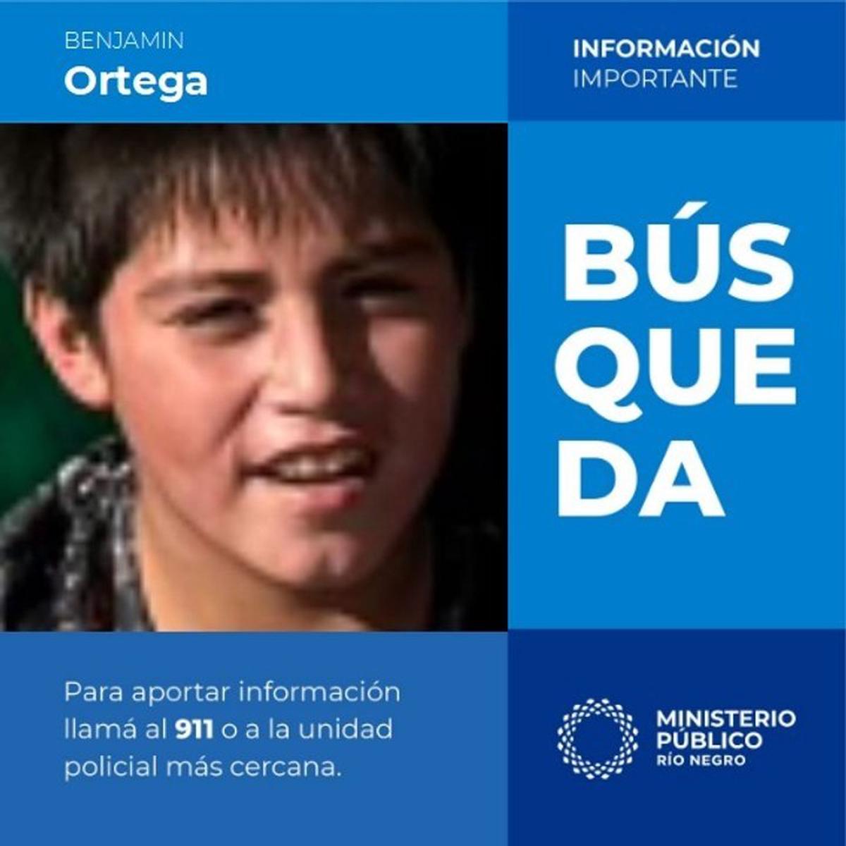 Conforme al comunicado que el Ministerio Público Fiscal de Río Negro le envió a la agencia Noticias Argentinas, se trata de Benjamín Tahiel Ortega, quien fue visto por última vez en inmediaciones de las calles Sobral y Sarmiento.