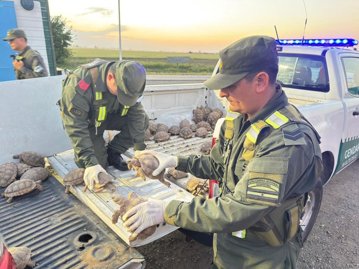 Al momento de la inspección, los funcionarios detectaron la presencia de animales dentro de bolsas tipo arpillera. Pudieron constatar que se trataba de 166 tortugas terrestres y 10 aves (nueve "cabecita negra" y un "picotero de collar").