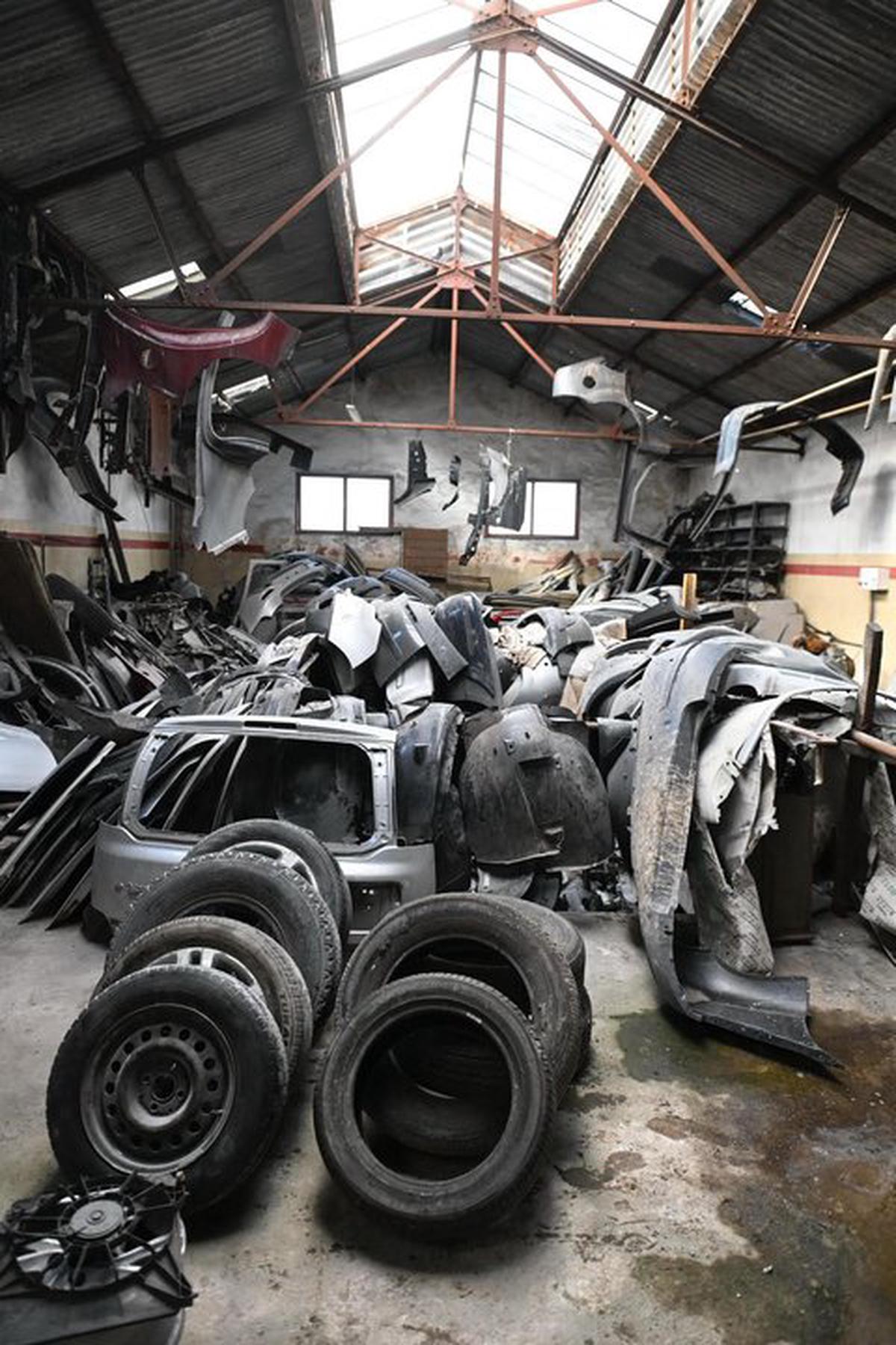 En el inventario realizado se constató el hallazgo de una caja trasera cortada de camioneta Toyota Hilux, una tapa de baúl de Toyota SW4, un motor de Renault Laguna, un tren trasero, 85 capots, 80 ópticas, 25 puertas baúl, 45 guardabarros, 550 paragolpes y 675 puertas, todas usadas y sin sticker de RUDAC que permita determinar su procedencia o trazabilidad.