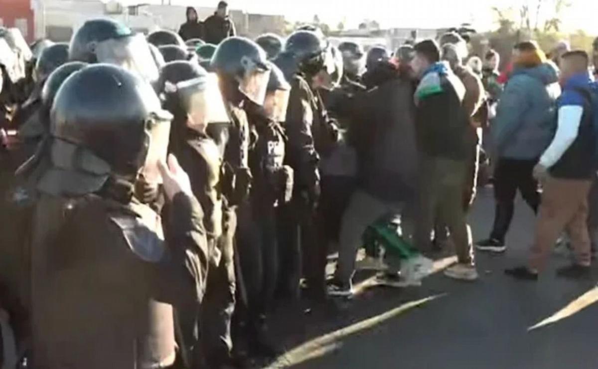 Sin embargo, un grupo de manifestantes arrojaron botellazos y piedrazos contra los federales, que repelieron los disturbios con balazos de goma.