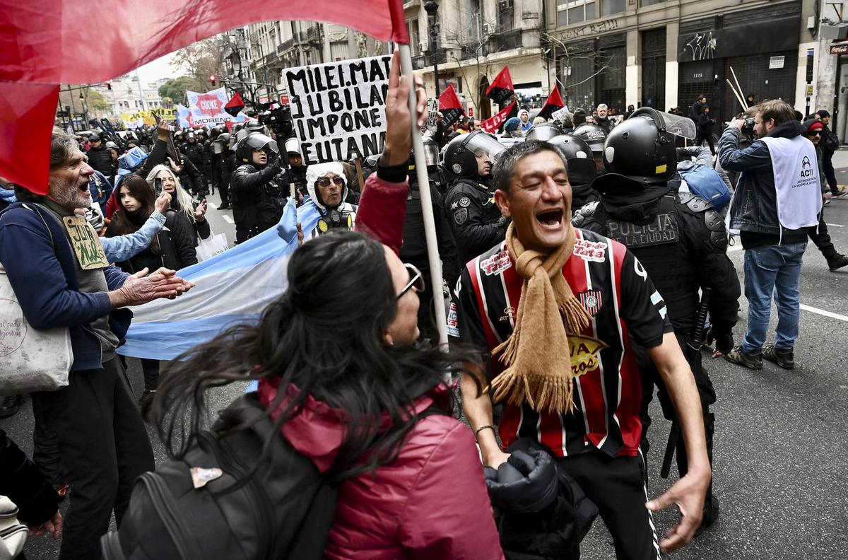 Ante esta movilización se vivieron momentos de tensión entre los manifestantes y los efectivos de la Policía de la Ciudad, que obligaron a los jubilados a movilizarse sobre las veredas en cumplimiento del protocolo antipiquetes.