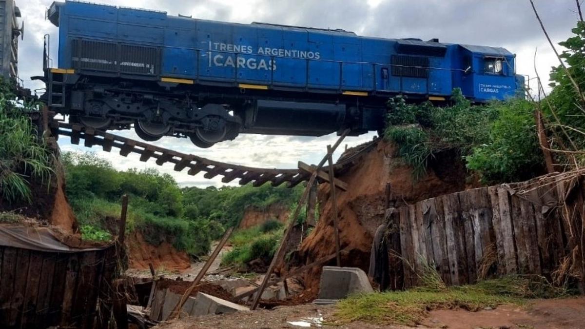Un tren de carga quedó suspendido sobre una alcantarilla al desmoronarse la vía