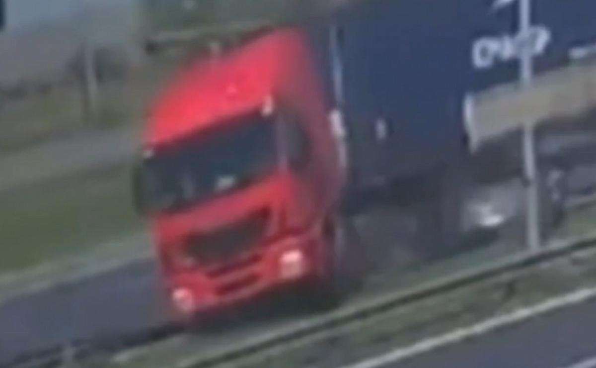 Las imágenes captadas por una cámara de seguridad de la Municipalidad de Campana muestran el momento exacto en que un camión despistó, cruzó de carril y chocó contra otros tres vehículos, provocando una tragedia instantánea.