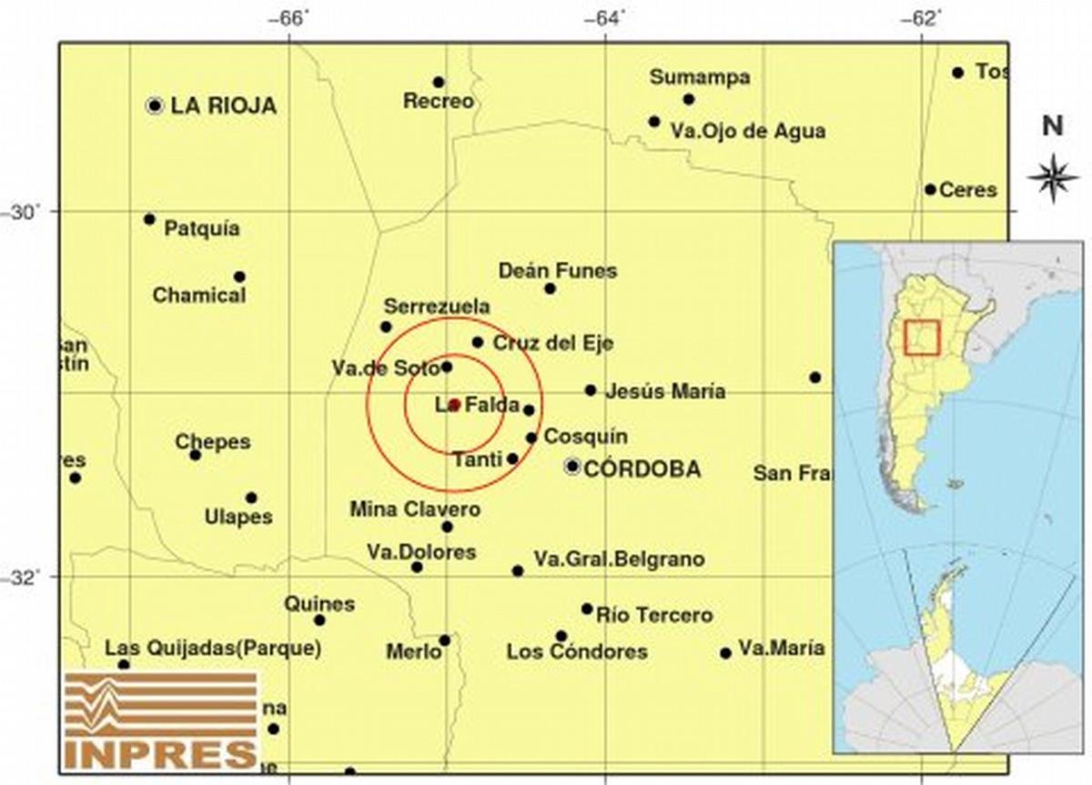 El movimiento telúrico ocurrió a las 13.57, con epicentro ubicado a 46 kilómetros al oeste de La Falda, 62 kilómetros al noreste de Chancaní y a 63 kilómetros al sureste de Serrezuela.